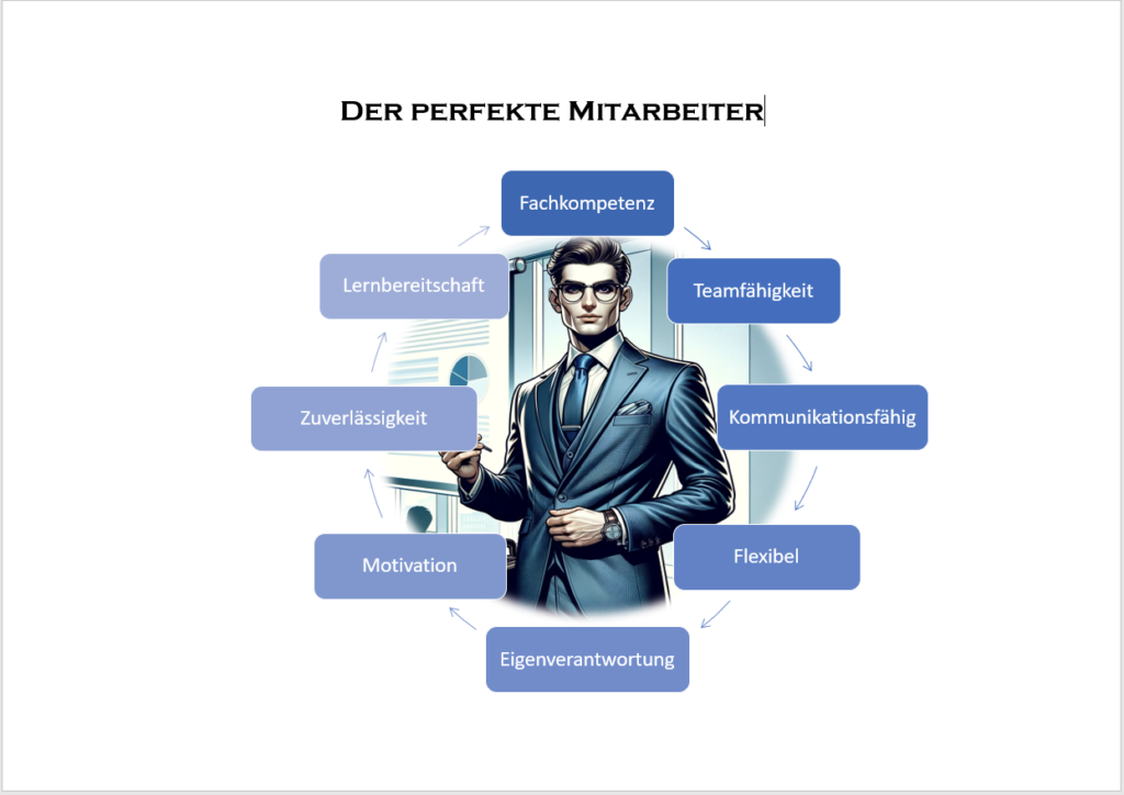 Erklärung: Wir haben mithilfe von ChatGPT ein Bild kreiert und zusätzlich noch wichtige Eigenschaften aufgezählt, die für uns ein perfekter Mitarbeiter haben sollte.
